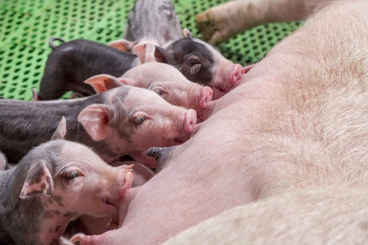 Genetic improvement has resulted in much larger litter sizes for each sow. In fact, today’s hyper-prolific sows have such large litters that colostrum and milk production cannot keep up with the piglet’s demands. This severely affects the piglet’s health, because it is the initial feeding of colostrum that kickstarts their immune system. Optimal sow diets and nutritional support for the piglets, starting at the earliest stages, makes an enormous difference in a sow’s health and gives piglets a strong start in life.